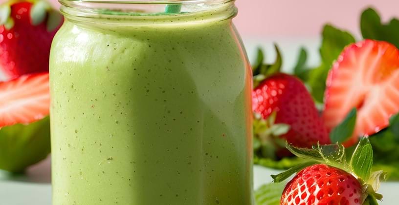 Gurke, Erdbeeren und Banane in Stücke schneiden. Zusammen mit dem Spinat und dem Kokoswasser in einen Mixer geben. Fein pürieren, bis der Smoothie cremig ist.