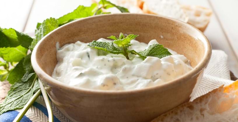 5. Servieren Sie das Tzatziki zum Beispiel mit frisch gebackenem Baguette oder mit Gyros.