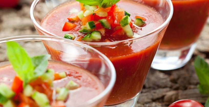 12 When the soup has cooled off, garnish it with the sliced peppers and cucumber.
