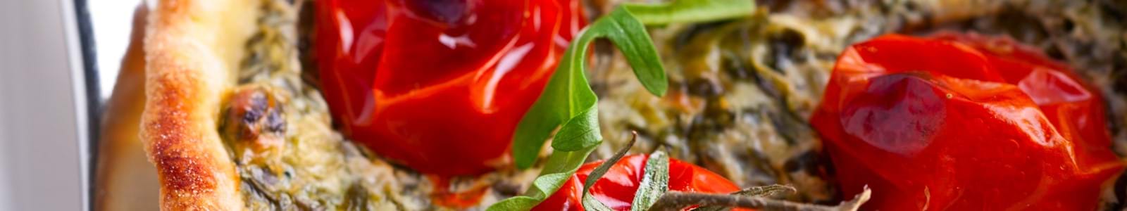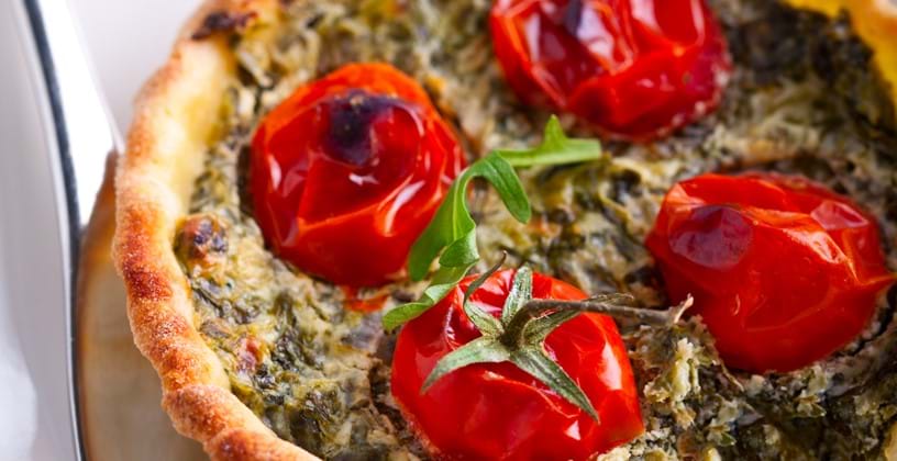 6. Halveer de tomaatjes en leg dit bovenop het spinaziemengsel.